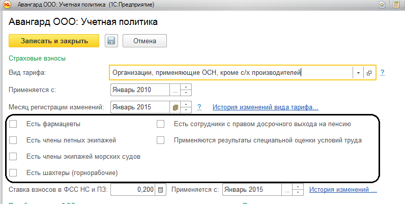 2. Далее настраиваются особенности расчета страховых взносов для частных ситуаций, требуемое утверждение отмечается флажком: