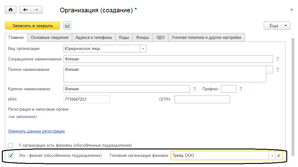 Если же подразделение не имеет выделенного баланса, то его следует внести в справочник "Подразделения" с указанием отдельной регистрации в ИФНС.