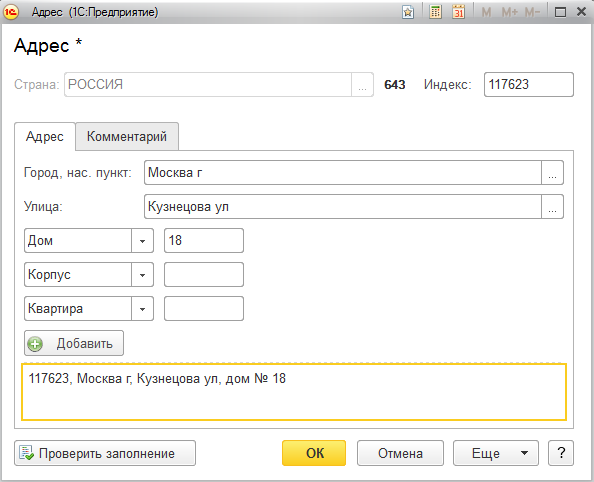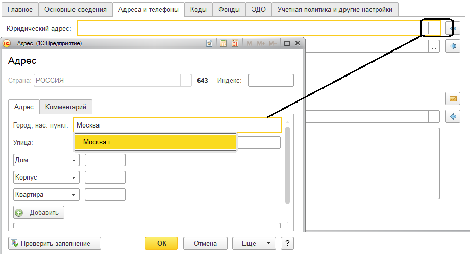 Адрес следует вводить выбором из адресного классификатора (можно набирать название на клавиатуре, далее будет автоматически подбираться информация по классификатору).