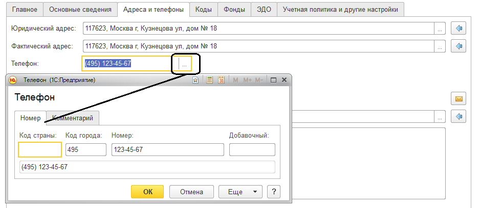 Откроем и откорректируем контактную информацию по организации: юридический адрес 117623, Москва г, Кузнецова ул., дом № 18