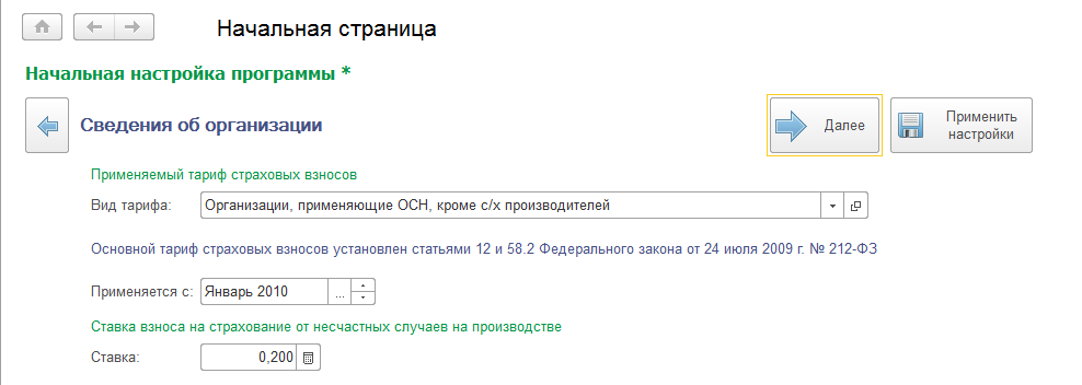 Что обеспечивает: выбор тарифа страховых взносов (и системы налогообложения), применяемого в организации, заполнение ставки взносов на страхование от несчастных случаев на производстве.