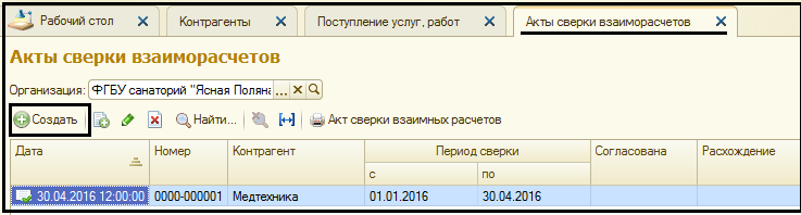 Документ "Акт сверки взаиморасчетов" предназначен для проведения сверки взаиморасчетов учреждения с контрагентами.