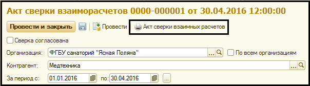 Из документа можно распечатать "Акт сверки взаимных расчетов":