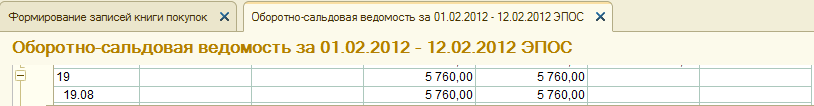 Необходимо проверить, что по состоянию на конец дня 12.02.2012 на счете 19 «НДС по приобретенным ценностям» сальдо отсутствует (рис. 9-49).