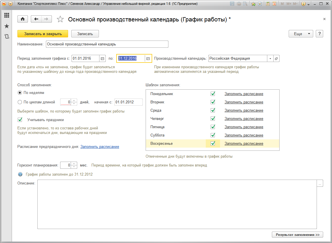 Календарь необходимо заполнить до начала работы с данными раздела "Зарплата", заполнение производится также в разделе "Зарплата" (Рис. 245).