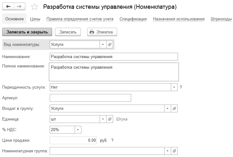 Рис. 13.3.3. Форма элемента справочника "Номенклатура"