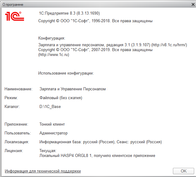 "1С:Зарплата и Управление Персоналом" версия 3.1.9.107.