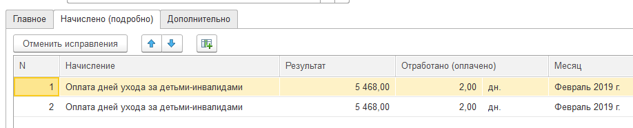 Проверим расчет на закладке "Начислено"