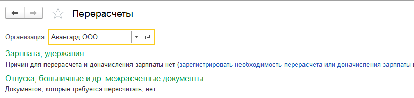 Перерасчеты. Проверена и проанализирована необходимость перерасчета зарплаты.