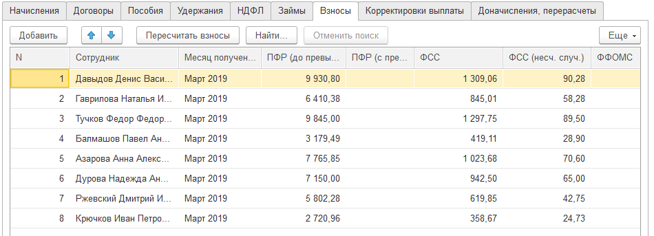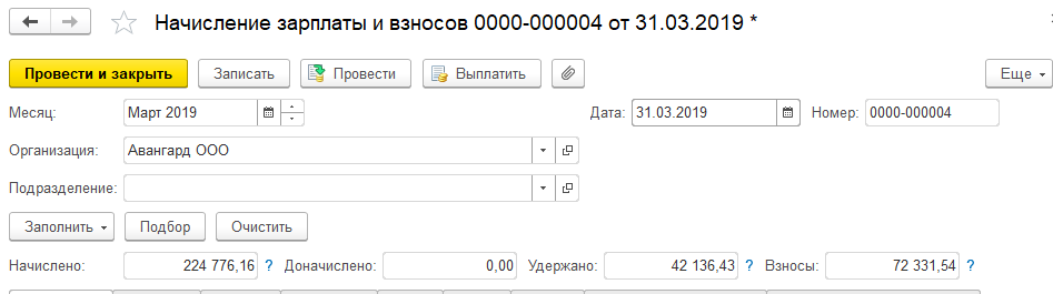 1. Начислим заработную плату за месяц март всем сотрудникам ООО "Авангард".