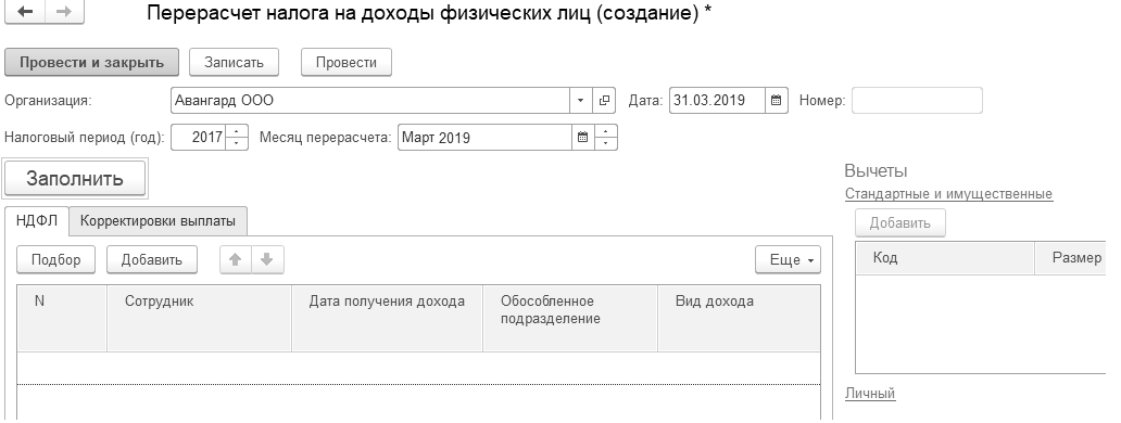 Перерасчет НДФЛ" может использоваться для закрытых налоговых периодов либо для уволенных сотрудников, по которым не выполняется расчет обычным образом.