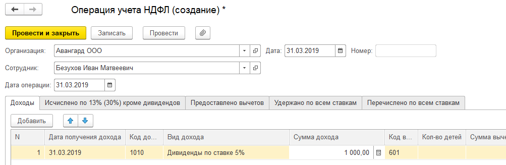 НДФЛ удержанный регистрируется