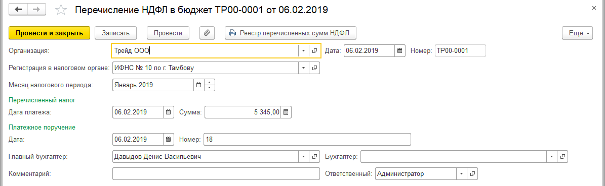 НДФЛ перечисленный