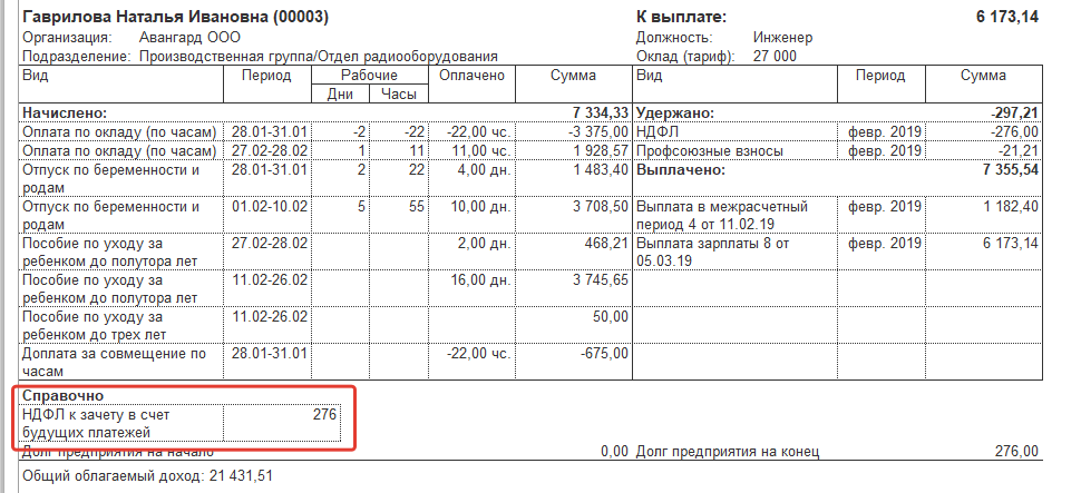 Если у сотрудника в последующих месяцах будут исчислены суммы налога, то излишне удержанный НДФЛ будет автоматически зачитываться в счет платежей помесячно.