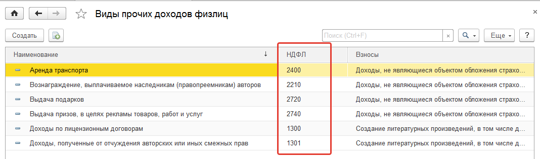 Такая же возможность уточнять коды доходов существует для прочих доходов (справочники из раздела "Выплаты", виды авторских договоров).