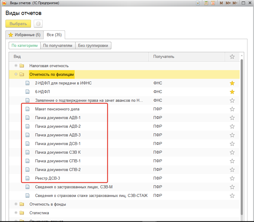 Также данные документы доступны в разделе "Отчетность, справки/ ПФР. Пачки, реестры, описи". Некоторые документы можно вывести в разделе "Кадры/ Документы персучета".
