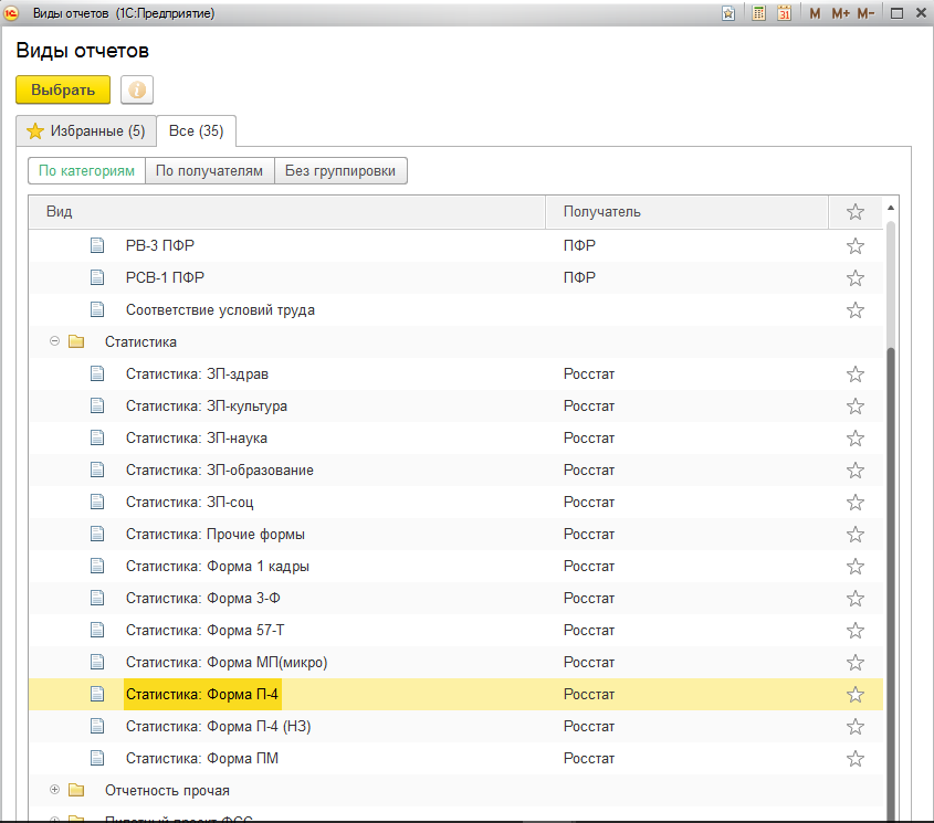 С помощью инструмента 1С-Отчетность (или инструмента подготовки регламентированных отчетов) можно сформировать отчетные формы для органов статистики. Данные отчеты выбираются по команде "Создать" из папки "Статистика".
