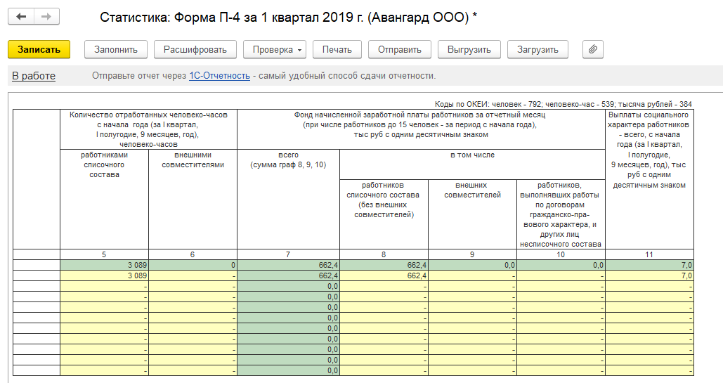 Отчеты, как правило, заполняются по кнопке "Заполнить" и могут быть скорректированы вручную.