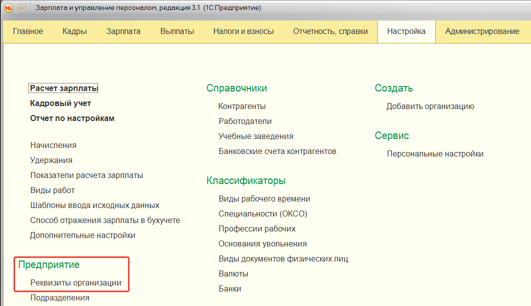 - Настройка кадрового учета и расчета заработной платы всех организаций программы;