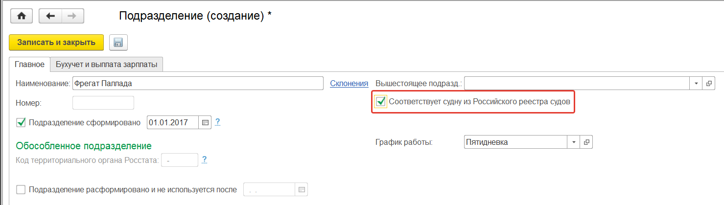 - Есть члены экипажей морских судов – эта настройка позволяет применять пониженный тариф страховых взносов для сотрудников тех подразделений либо территорий, которым будет установлен флажок "Соответствует судну из Российского реестра судов"