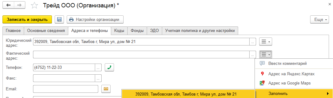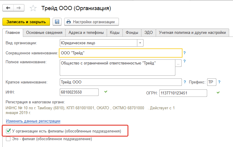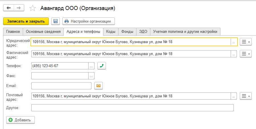 Данные организации следует записать и закрыть.