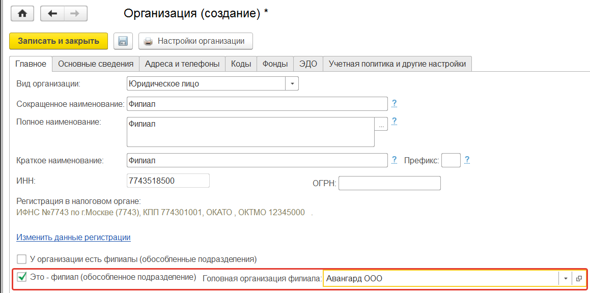 Тогда такое обособленное подразделение вносится в справочнике "Организации", и для него обязательно отмечается флаг "Это – филиал (обособленное подразделение)", а также указывается ссылка на ту организацию, которой принадлежит данное обособленное подразделение. Обратите внимание, что при синхронизации с бухгалтерской программы в ней должны быть соответствующие настройки, т.к. данные справочники будут синхронизироваться.
