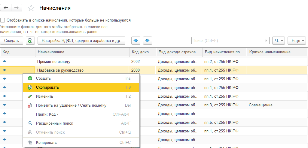 А) Добавим новое начисление копированием, используя надбавку за руководство.