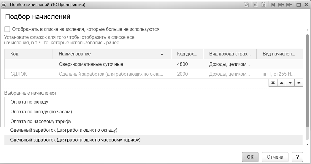 В открывшемся окне добавим двойным кликом левой клавиши мыши соответствующие начисления в состав расчетной базы. В нашем примере – это: