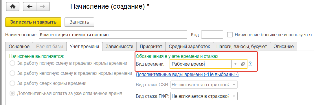Запишем начисление. Для него потребуется также настроить закладку "Приоритет", эту настройку мы выполним в следующем практикуме. Остальные настройки оставим по умолчанию. Запишем начисление.