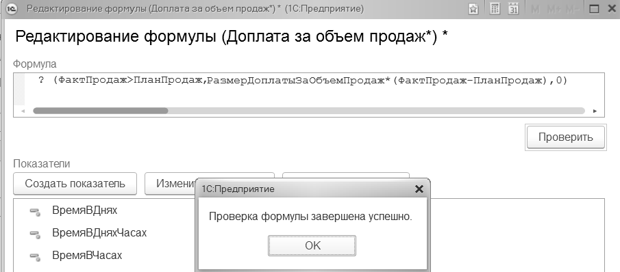 Б) для того, чтобы рассчитать данное начисление, нам потребуются показатели; добавим их в список показателей и укажем следующие настройки: