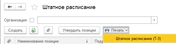 - новые позиции добавляются непосредственно в справочник "Штатное расписание" по актуальным подразделениям и должностям, это упрощает первичное заполнение позиций, а также корректировки в последующем при необходимости;