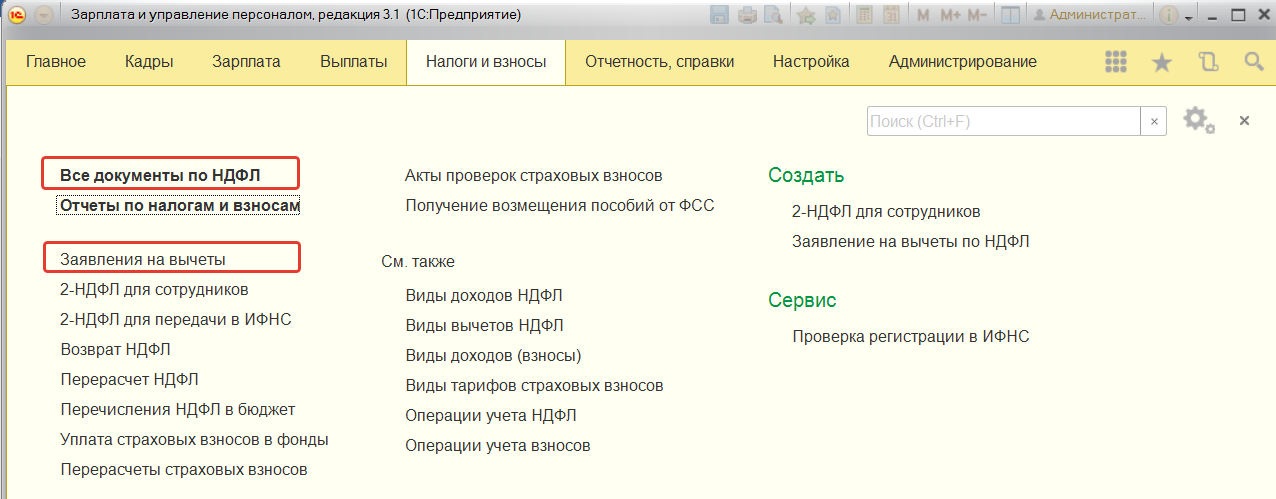 2) Также при необходимости в разделе "Налоги и взносы/ Все документы по НДФЛ" можно сформировать заявление о подтверждении права на зачет авансов по НДФЛ в ИФНС.