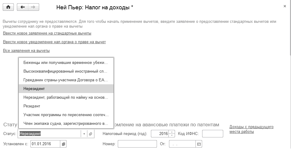 Ссылка "Налог на доходы". Статус налогоплательщика