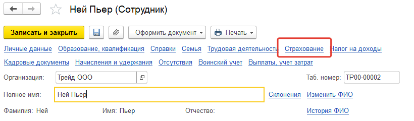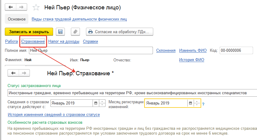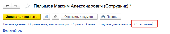 Для таких физических лиц следует отметить соответствующий флаг по ссылке "Страхование".