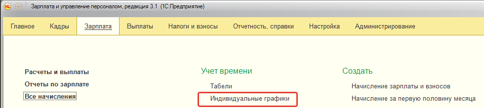 Доступ к документу осуществляется из раздела "Зарплата / Индивидуальные графики".