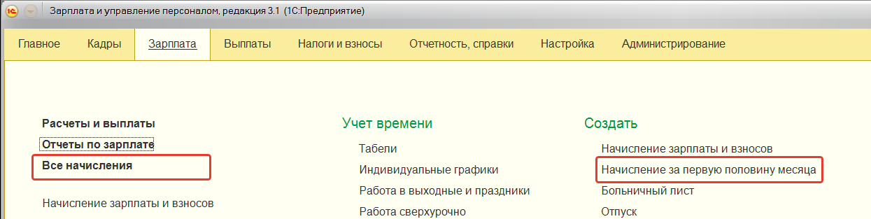 Доступ к документу осуществляется в разделе "Зарплата / Все начисления".