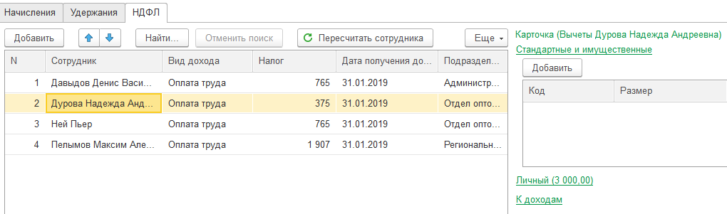 3. Проанализируем расчет НДФЛ (все сотрудники – граждане РФ, ставка налога 13%):