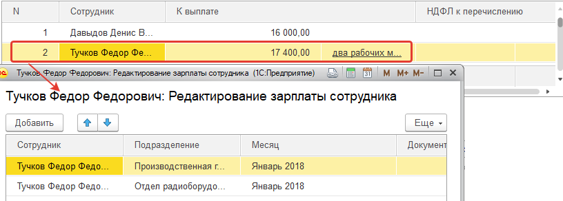 Обратите внимание, что выплата учитывается по сотрудникам (т.е. учитываются места их работы – подразделения).