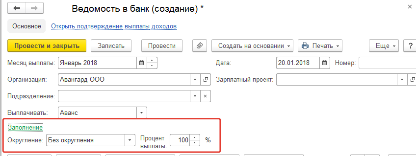 - Ведомость в банк по зарплатному проекту