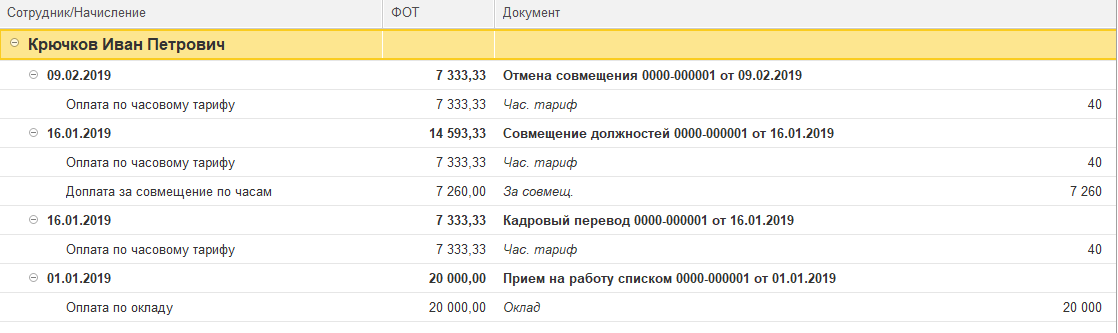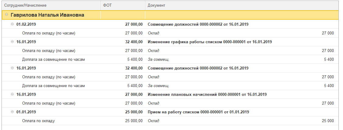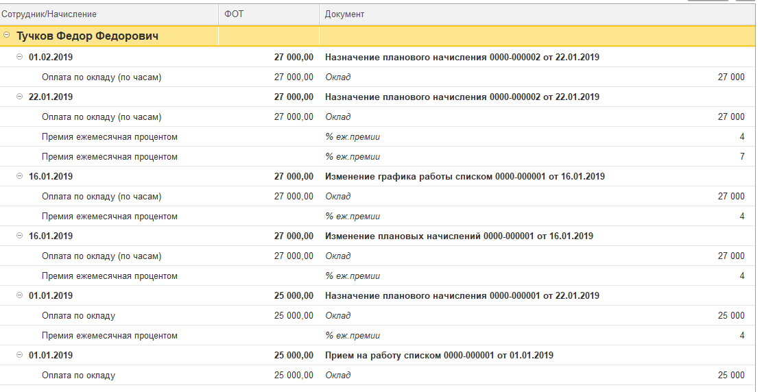 - как менялся ФОТ и плановые начисления в течение месяца с учетом назначений доплат и переводов;