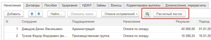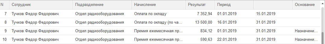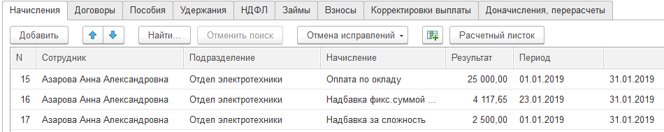 - Начисления – по всем начислениям, требующим окончательного расчета (ежемесячным, сценарным, выстреливающим);