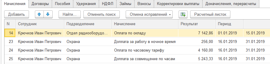 Также вычеты есть у Крючкова И.П. Следует обратить внимание, что у него менялось место работы (подразделение) – вычеты распределены пропорционально.