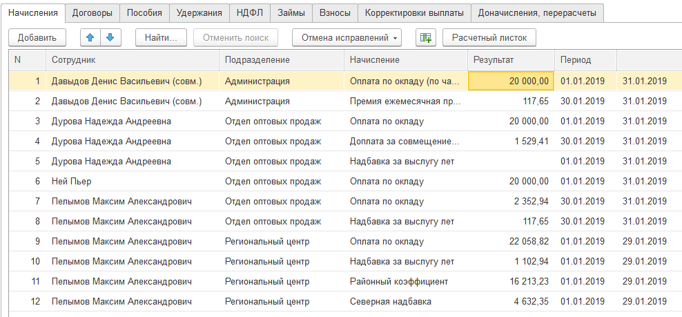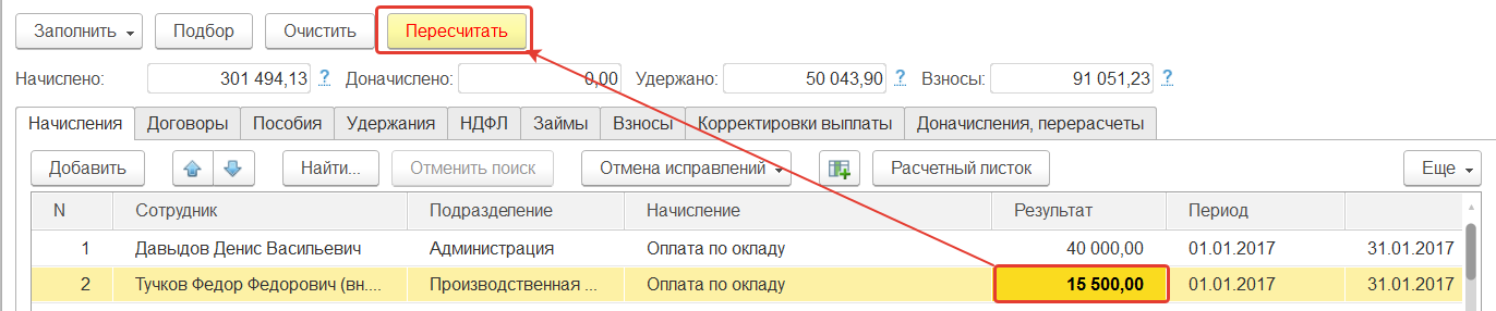 Требуется также самостоятельно проанализировать результат расчета сумм сотрудникам.