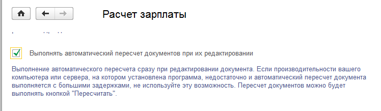Напомним, что в настройках расчета зарплаты существует возможность отключения автоматического расчета зарплаты при ручных правках в документах.
