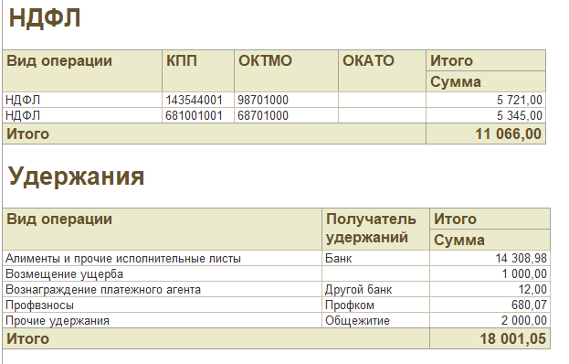 Обратите внимание, что НДФЛ учтен по нескольким ОКТМО