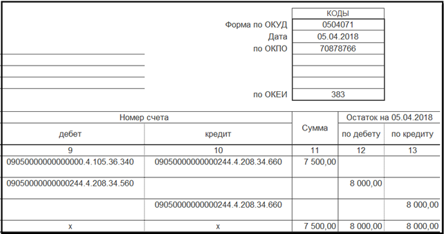 Отчет Журнал операций ф.0504071 (фрагмент 2)