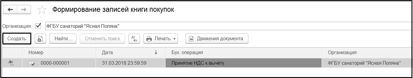 Самостоятельно введите документ "Формирование записей книги покупок". Дата регистрации 09.03.2018.