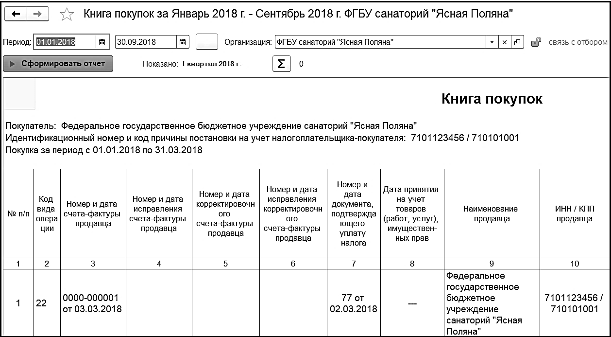 Настройки Книги покупок аналогичны настройкам Книги продаж.
