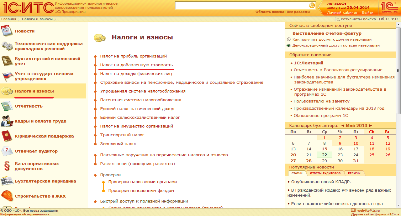Государственные (муниципальные) учреждения являются плательщиками налогов, в том числе и НДС. Для работы с налоговым учетом в информационной системе 1С:ИТС выделен раздел "Налоги и взносы".