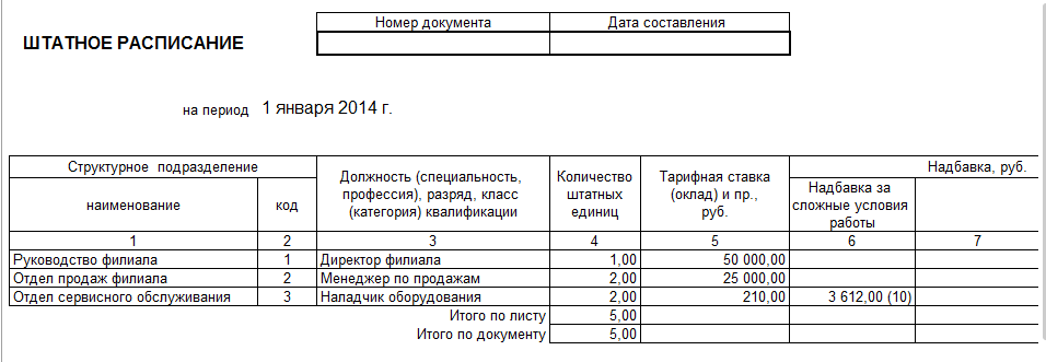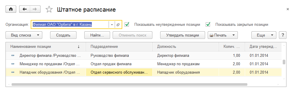 Зарегистрируем штатное расписание в программе с помощью справочника "Штатное расписание":